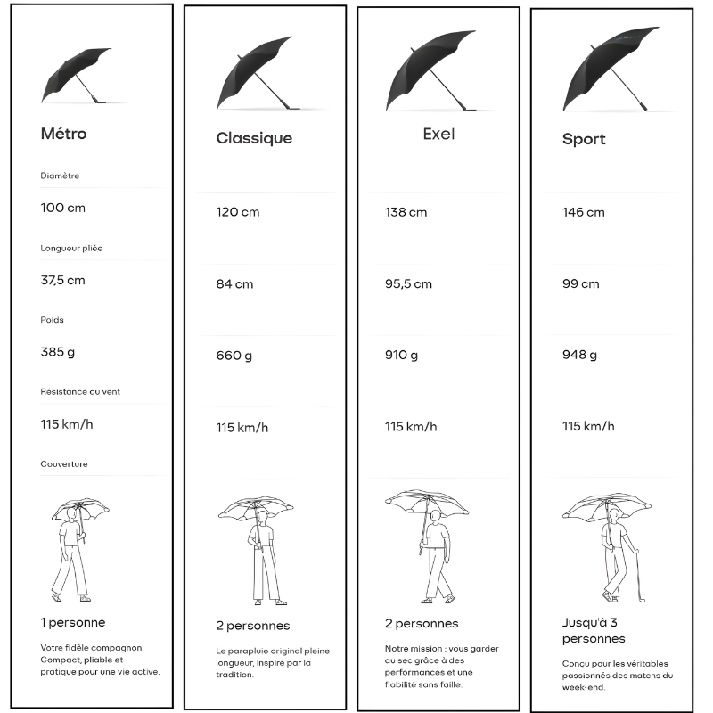 Ce parapluie est le modèle le plus compact et léger de la gamme.